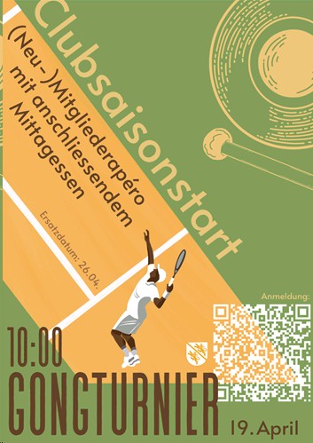 Am Sonntag, 19. April (Ersatzdatum 26.4.26), ab 10.00 Uhr ist es wieder so weit: Unser traditionelles Gongturnier im Römerpark steht an. Anmeldung gerne rasch, spätestens bis am 15.4.26! Mach mit und bestreite mehrere Spassmatches mit ausgelosten Partnern. Im Anschluss stossen wir gemeinsam – mit neuen wie auch bekannten Gesichtern – auf die neue Saison an und tauschen uns beim Mittagessen in geselliger Runde aus. Die Anmeldung erfolgt ganz einfach über den QR-Code auf dem Flyer oder über folgenden Link: https://forms.cloud.microsoft/r/CiNVqDNiUt Alternativ kannst du dich auch per E-Mail über gesellschaftliches@ltc.ch anmelden. Für Fragen oder Anliegen stehe ich dir ebenfalls gerne zur Verfügung. Ich freue mich auf einen erfolgreichen Saisonstart und deine Teilnahme. Mit herzlichen LTC-Grüssen Desirée